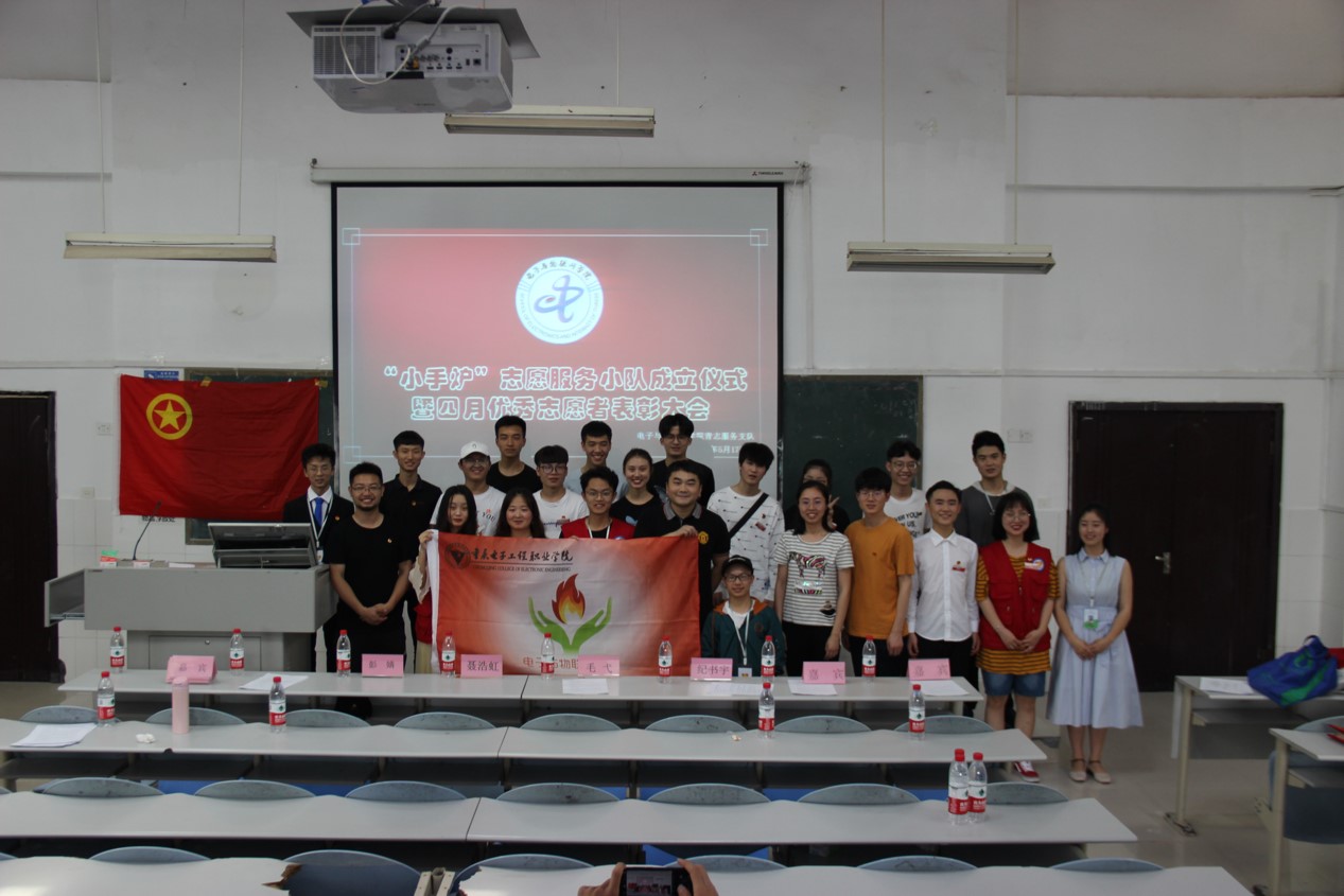 重庆电子工程职业学院JBO竞博官网青年志愿服务支队"小手炉"志愿服务小队成立仪式暨四月优秀志愿者表彰大会于2019年5月17日中午12点20正式开始。