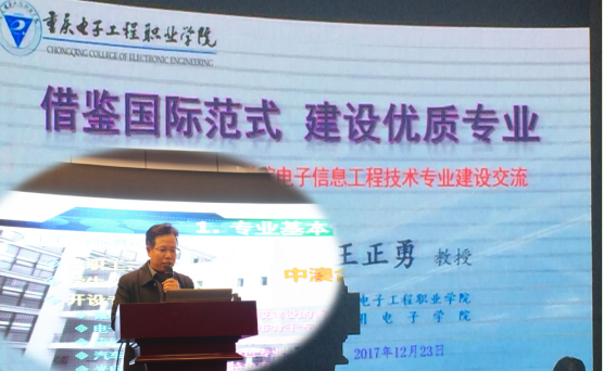 重庆市电子信息工程技术骨干专业建设项目负责人、应用电子学院王正勇教授在大会上作了《借鉴国际范式,建设优质专业》的院校经验交流。